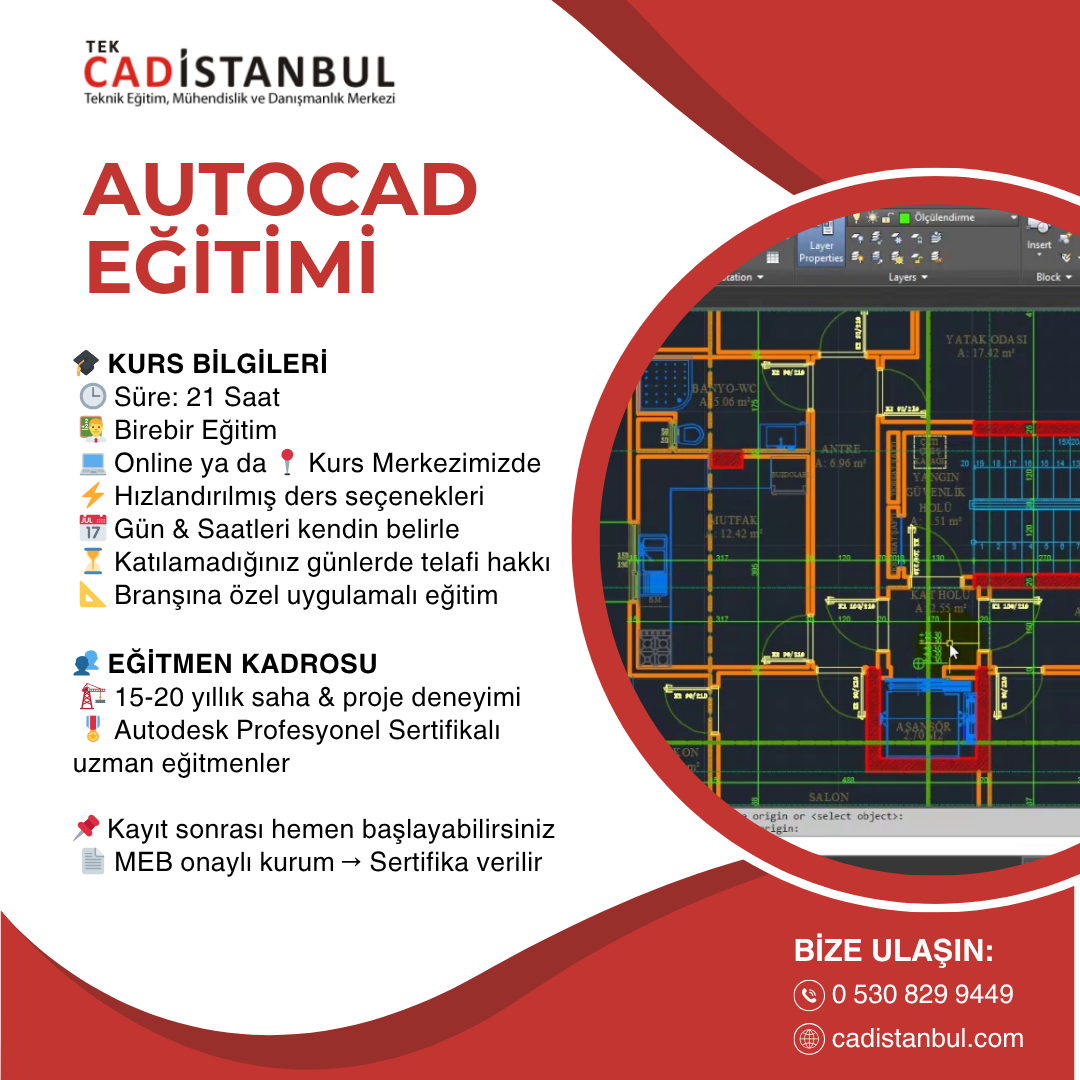 CADİSTANBULMÜKEMMEL 187 değerlendirme göre. 'da yayınlandı Sude atlamazTrustindex, incelemenin orijinal kaynağının Google olduğunu doğrular. Abdullah Nazım hocadan cephe eğitimlerimi tamamladım. Kolay anlaşılabilen ve detaylı anlatımı ile yoluma ışık tuttu. Bu sektörde tecrübeli, başarılı birini arıyorsanız mutlaka görüşün derim. Bütün emekleriniz için sonsuz teşekkürler.'da yayınlandı Cemile akyüzTrustindex, incelemenin orijinal kaynağının Google olduğunu doğrular. Cad İstanbuldan birebir Autocad eğitimi aldım. Autocad alt yapım hiç olmamasına rağmen Döndü hocam sayesinde kısa sürede çok şey öğrendim. Çok ilgiliydi ve anlamadığım yerde tekrar tekrar anlatıp çok güzel notlar almamı sağladı. Anlamadan geçtiğim hiç bir konu olmadı. Kurs benim için çok verimli geçti. Can bey ve Davut beyde ilgili ve güler yüzlülerdi. Tekrardan başka kurslar almak istediğimde tek adresim Cad İstanbul olacak. Herkese tavsiye ederim.'da yayınlandı Mehmet Emin GözTrustindex, incelemenin orijinal kaynağının Google olduğunu doğrular. İdecad statik özel ders eğitimi aldım. Kursu daha önceden tanıyordum. Autocad ve 3ds max eğitimi almıştım. Kaliteli, işlerini düzgün yapan bir kurs. Diğer önceki eğitimler gibi çok memnun kaldım. Teşekkür ederim'da yayınlandı Abdullah ArıcaTrustindex, incelemenin orijinal kaynağının Google olduğunu doğrular. Cad İstanbul’da AutoCAD eğitimi aldım ve çok memnun kaldım. Eğitim süreci oldukça verimliydi, anlatım net ve uygulamalıydı. Eğitmenler ilgili ve destekleyici. AutoCAD öğrenmek isteyen herkese kesinlikle tavsiye ederim.'da yayınlandı Dilek BarutcuTrustindex, incelemenin orijinal kaynağının Google olduğunu doğrular. CAD İstanbul’da aldığım Archicad ve Revit eğitimleri benim için son derece verimli geçti. Yusuf Hoca ve Sercan Hoca, eğitim boyunca sadece anlatmakla kalmayıp gerçekten öğretmeye odaklanan yaklaşımlarıyla büyük katkı sağladılar. Yoğun ilgileri ve destekleri sayesinde kısa sürede büyük ilerleme kaydettim. Ayrıca Davut Bey ve Can Bey’in organizasyon sürecindeki destekleri ve profesyonel yaklaşımları için teşekkür ederim. Eğitim süreci hem öğretici hem de keyifliydi. Emeği geçen herkese gönülden teşekkür ederim. Gönül rahatlığıyla tavsiye ederim.'da yayınlandı Defne FameTrustindex, incelemenin orijinal kaynağının Google olduğunu doğrular. CAD İstanbul’da AutoCAD eğitimi aldım ve gerçekten kalbim rahat bir şekilde “iyi ki” diyebiliyorum. Yusuf Korkmaz’dan ders aldım ve bu süreçte çok güzel ilerleme kaydettim. Sadece ders anlatıp geçen bir yer değil; her konuda ellerinden gelen desteği verdiler. Samimiyetleri, ilgileri ve sabırları sayesinde kendimi bir kurs ortamında değil, evimde gibi hissettim. Gönül rahatlığıyla herkese tavsiye ederim. İleride tekrar bir kurs almam gerekirse hiç düşünmeden yine CAD İstanbul’u tercih ederim.'da yayınlandı Ecrin ŞimşekTrustindex, incelemenin orijinal kaynağının Google olduğunu doğrular. Biz iki arkadaş 3ds Max öğrenmek için başladık, genelde okuldaki derslerden sonra geliyorduk. Ders aralarında sürekli atıştırmalık ikram edip öğrencilerle sohbet ediyorlar ortam çok samimi. Başta uygulama zor gelir diye korkuyorduk ama hocamız gerçekten çok ilgiliydi. Anlamadığımız yerleri tek tek anlattı istediğimizde tekrar edebilelim diye önemli dersleri kaydetti. Laptopu uzun süre bozuk olan arkadaşım için dönem boyunca kullansın diye evine kurstan laptop gönderecek kadar düşünceliler. Kurs bitse bile her zaman uğrayın, gelin çalışın diyen insanlar.Biz çok memnun kaldık.'da yayınlandı EdaNur ZenginTrustindex, incelemenin orijinal kaynağının Google olduğunu doğrular. AutoCad ve Rhinoceros kurslarını beraber aldım. Eğitim olarak da süreç olarak da çok memnun kaldım. Ders sonrası verilen ödevlerle öğrendiklerim iyice pekişti. Hem çok anlayışlı hem de işlerinde iyi oldukları için tavsiye ederim.'da yayınlandı Erdoğan ErolTrustindex, incelemenin orijinal kaynağının Google olduğunu doğrular. CAD istanbula çok Teşşekür ederim bana çok şey kattılar ilk derse girdiğimde hiç bi bilgim yoktu son derse geldiğimde bende kendime çok şaşırdım herkese tavsiye ediyorum